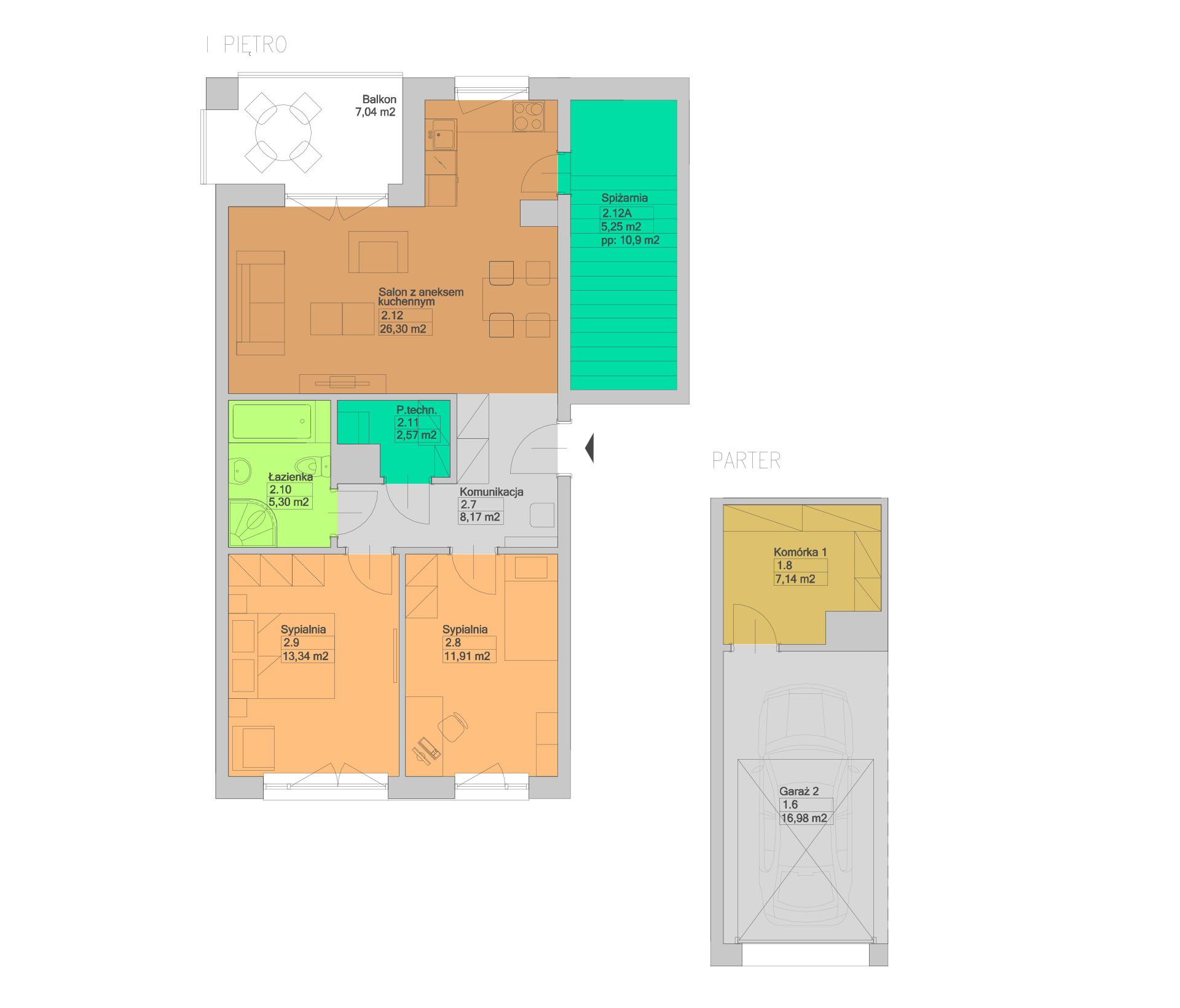 | 2.12 | SALON Z ANEKSEM KUCHENNYM | 26,30 m2 |