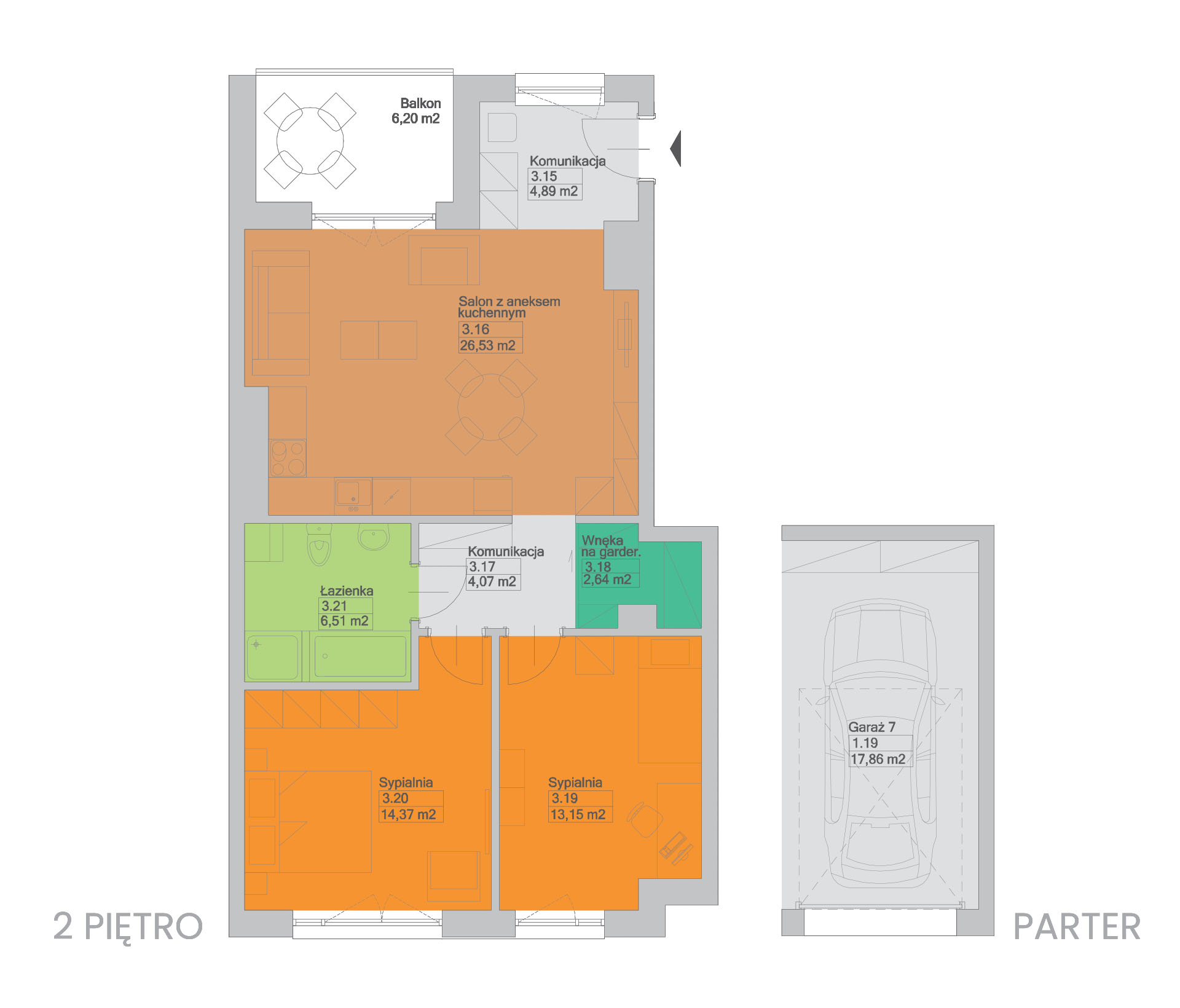 | 3.18 | WNĘKA NA GARDEROBĘ | 2,64 m2 |